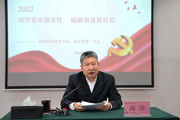 會上,陜體集團黨委書記、執(zhí)行董事高潔以《深學黨章強黨性砥礪奮進新征程》為題,針對黨的二十大通過的《中國共產(chǎn)黨章程(修正案)》,圍繞黨章修改歷程、新黨章修改的內(nèi)容、修改新黨章的重要意義及強化對新黨章的學習等四個方面進行了解讀。