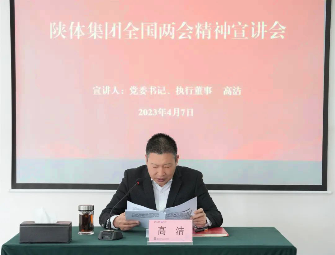 4月7日,陜體集團(tuán)組織召開深入學(xué)習(xí)貫徹全國兩會(huì)精神宣講報(bào)告會(huì),黨委書記、執(zhí)行董事高潔為系統(tǒng)廣大干部職工作宣講報(bào)告。