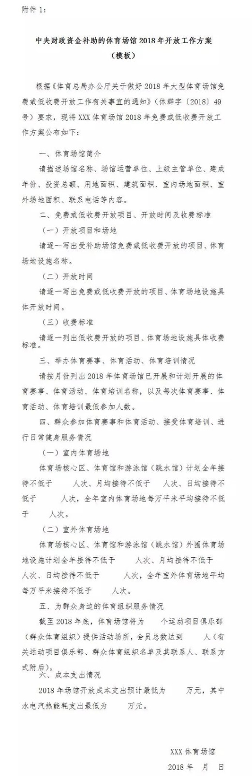 1.中央財(cái)政資金補(bǔ)助的體育場館2018年開放工作方案(模板)