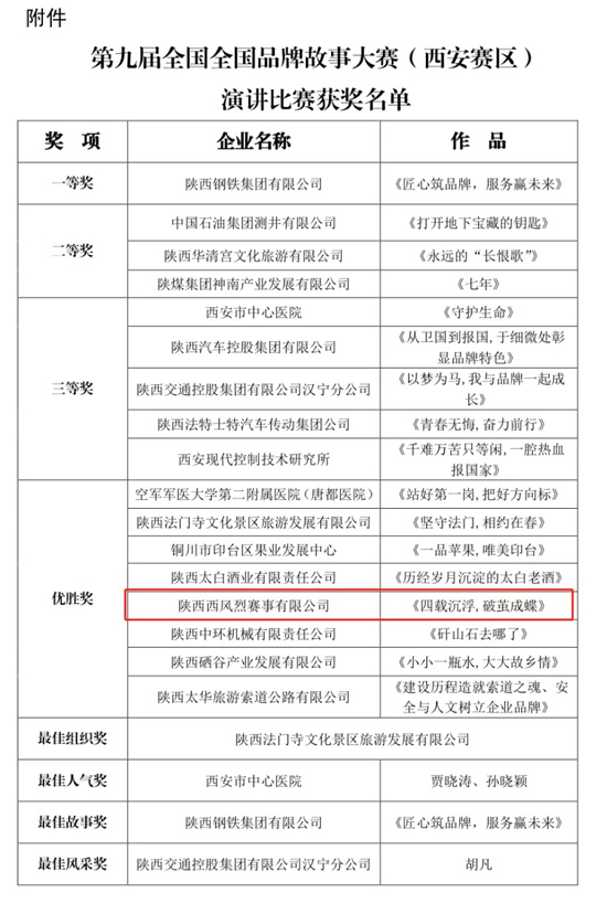 西風(fēng)烈賽事公司榮獲第九屆全國品牌故事大賽(西安賽區(qū))演講比賽優(yōu)勝獎(jiǎng)