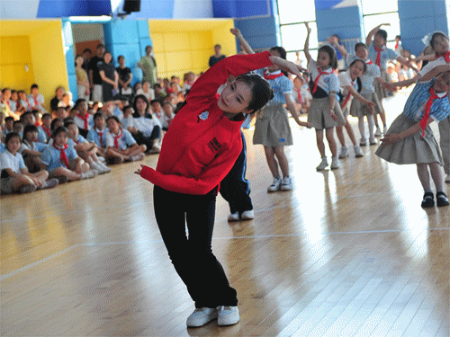 在技術(shù)動(dòng)作展示環(huán)節(jié)中,國(guó)內(nèi)著名的花樣滑冰男子單人滑、冰舞現(xiàn)役運(yùn)動(dòng)員,為師生們展示了前燕式平衡、托舉、空跳等技術(shù)動(dòng)作。在裝備講解環(huán)節(jié)中,孩子們了解到了各項(xiàng)目冰鞋的不同之處,還試穿了頭盔、護(hù)胸等全套冰球運(yùn)動(dòng)裝備,近距離接觸到了做工精致考究的花樣滑冰賽服。在整個(gè)活動(dòng)過程中,每位學(xué)生都認(rèn)真聆聽、積極參與互動(dòng),對(duì)冰上運(yùn)動(dòng)表現(xiàn)出了極大熱情;顒(dòng)的最后,創(chuàng)聚冰雪的運(yùn)動(dòng)員、教練員帶領(lǐng)學(xué)生們一起學(xué)習(xí)了兩節(jié)花樣滑冰廣播操,讓大家親身感受了花樣滑冰的藝術(shù)與力量之美。